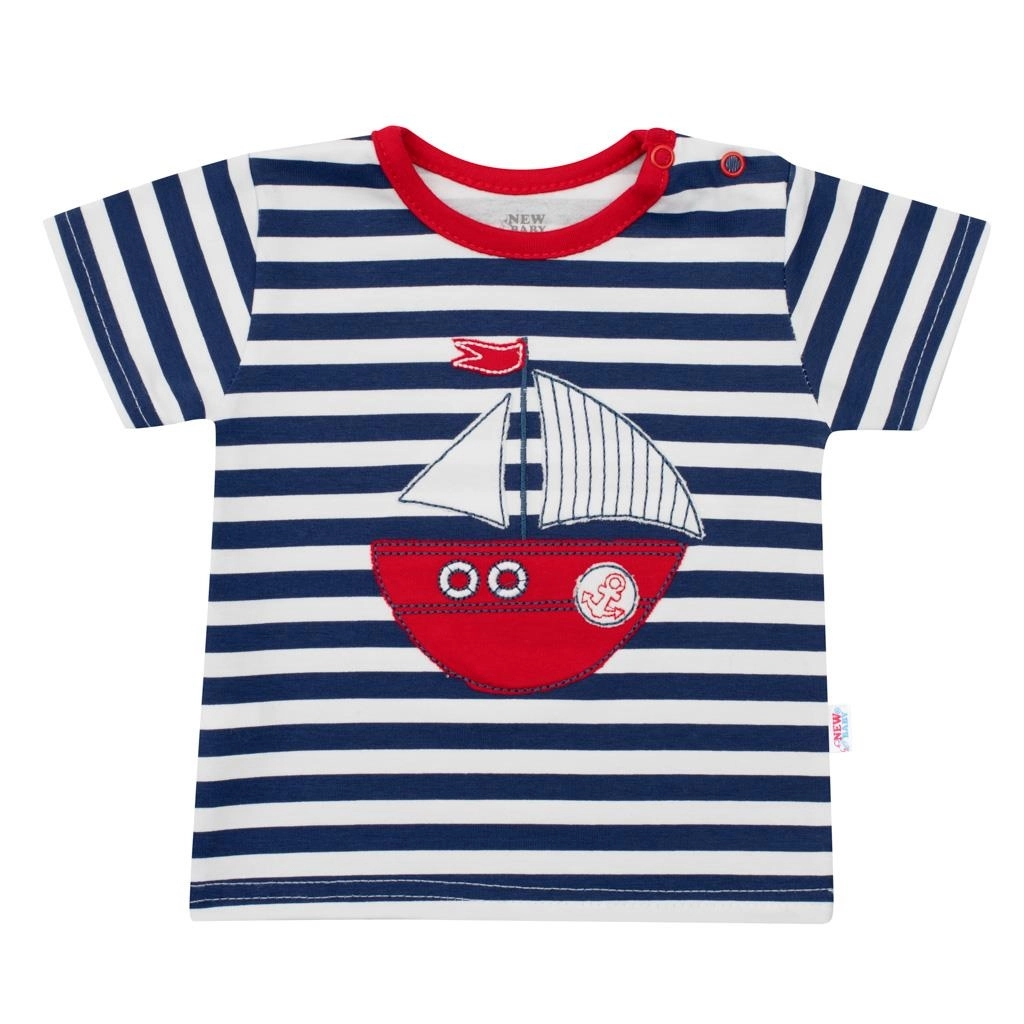 Dette 2-delte sæt NEW BABY Marine er ideelt til varme dage. Den stribede T-shirt med kontrastkant og en sød bådnøgneapplikation er fores med stof, så den ikke irriterer barnets sarte hud. Praktisk lukning på skulderen gør det nemt at tage af og på.