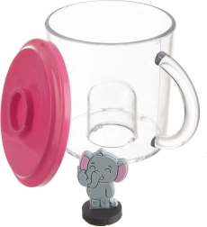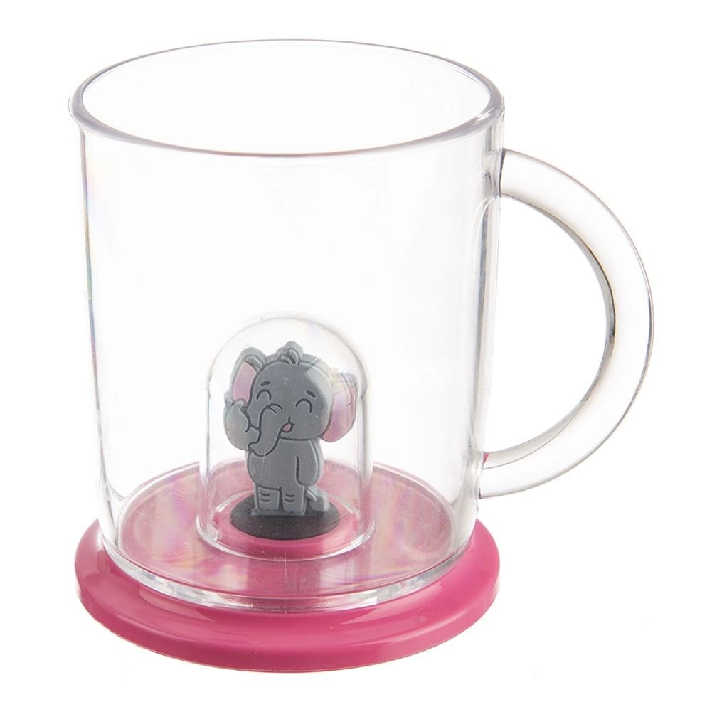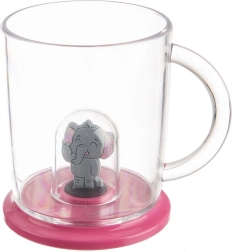 Praktisk krus til børn med en sød elefantfigur på låget, som kan tages af og bruges som legetøj. Kruset er lavet af meget holdbar, gennemsigtig tritan – et materiale, der ikke optager lugte eller smag og er sikkert for børn (BPA-frit). De kompakte mål gør det behageligt at holde og perfekt til daglig brug både derhjemme og i haven.