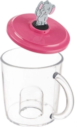 Let og holdbart børnekrus med låg og aftagelig elefantfigur, volumen 240 ml. Fremstillet af BPA-fri tritan, egnet til opvaskemaskine, tåler temperaturer fra -10 °C til +95 °C. Ideelt til vand, juice, kakao og te. Takket være det gennemsigtige materiale kan barnet se drikken, hvilket understøtter regelmæssig væskeindtagelse. Behageligt håndtag for nemt greb og et hygiejnisk låg beskytter drikken mod snavs og insekter.