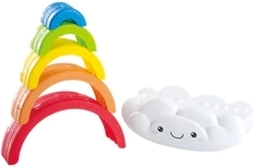 Fem farvede regnbuedele stables fra den største til den mindste og træner både logik og tålmodighed.