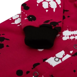 Sød og praktisk babyheldragt NEW BABY i mørk rosa, der giver maksimal komfort til din baby. Den er lavet af blød bomuld med et strejf af elastan, har en foret bomuldsforing, hætte med små ører og trykknapper i hele længden for nem påklædning og bleskift. Ideel til forår og efterår.