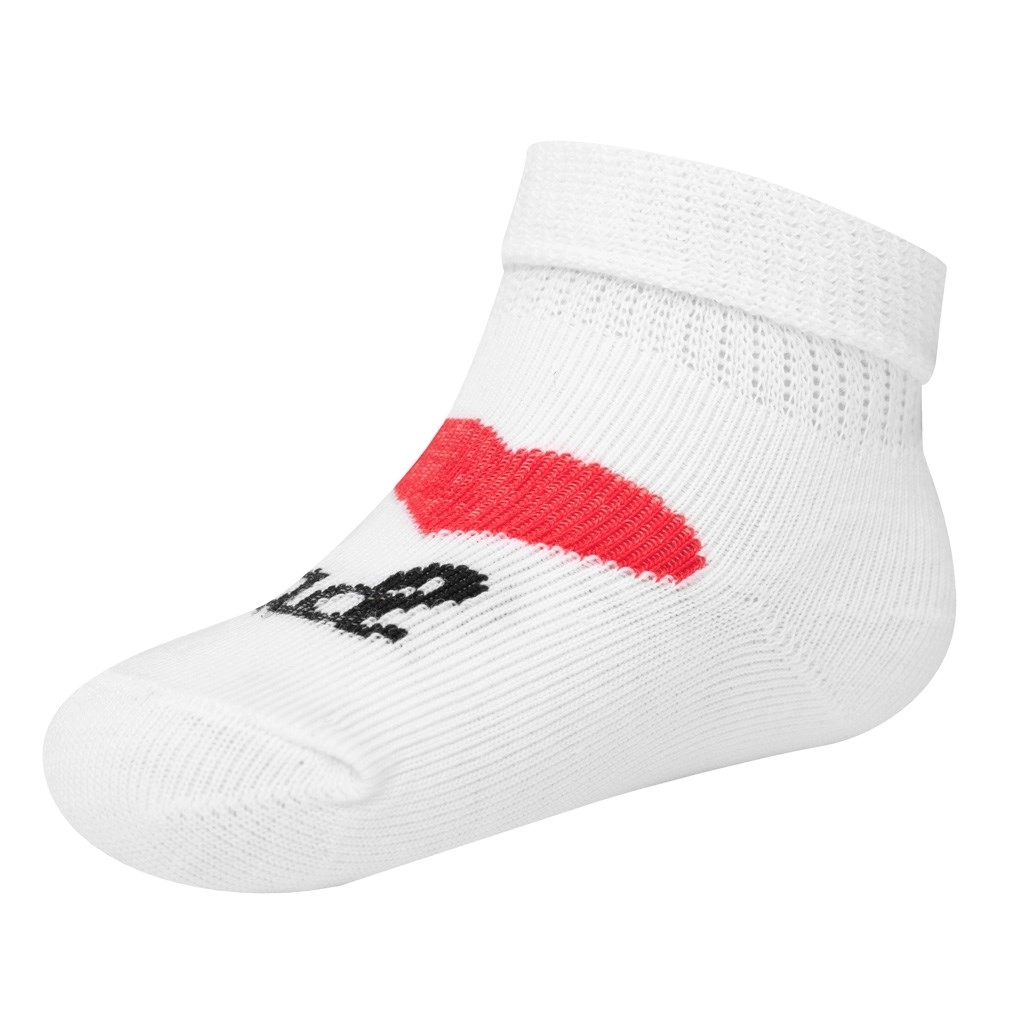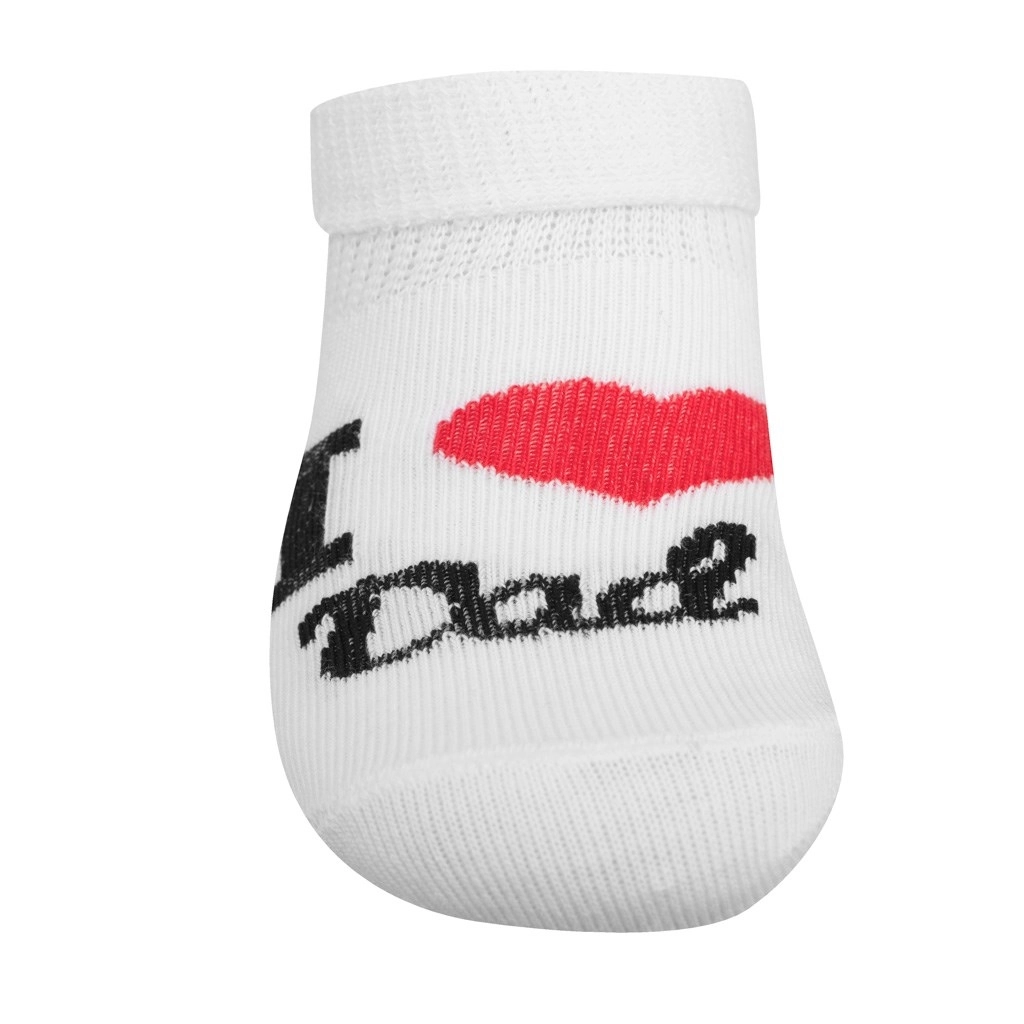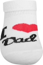 Ultralette bomuldssokker fra New Baby til spædbørn tilbyder behagelig brug takket være materiale af høj kvalitet med et højt bomuldsindhold. Den elastiske kant sikrer, at sokkerne sidder godt uden at stramme om den følsomme babyfod. Det glade motiv I Love Mum and Dad og den rene hvide farve passer til ethvert outfit.