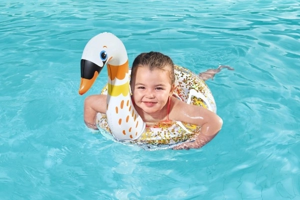 Den søde oppustelige badering i form af en svane fra Bestway er ideel til børn fra 3 til 6 år. Takket være det holdbare PVC-materiale, den sikre tilbageholdelsesventil og de kompakte mål tilbyder ringen behagelig og sikker vandleg ved poolen, på stranden og ved søen.