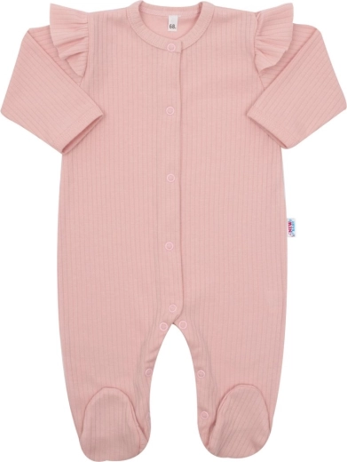 Heldragten er designet til at holde babyens ryg dækket uanset bevægelse. Moderne striber og den alsidige lyserøde farve gør den til et stilfuldt og praktisk stykke i basisgarderoben.
