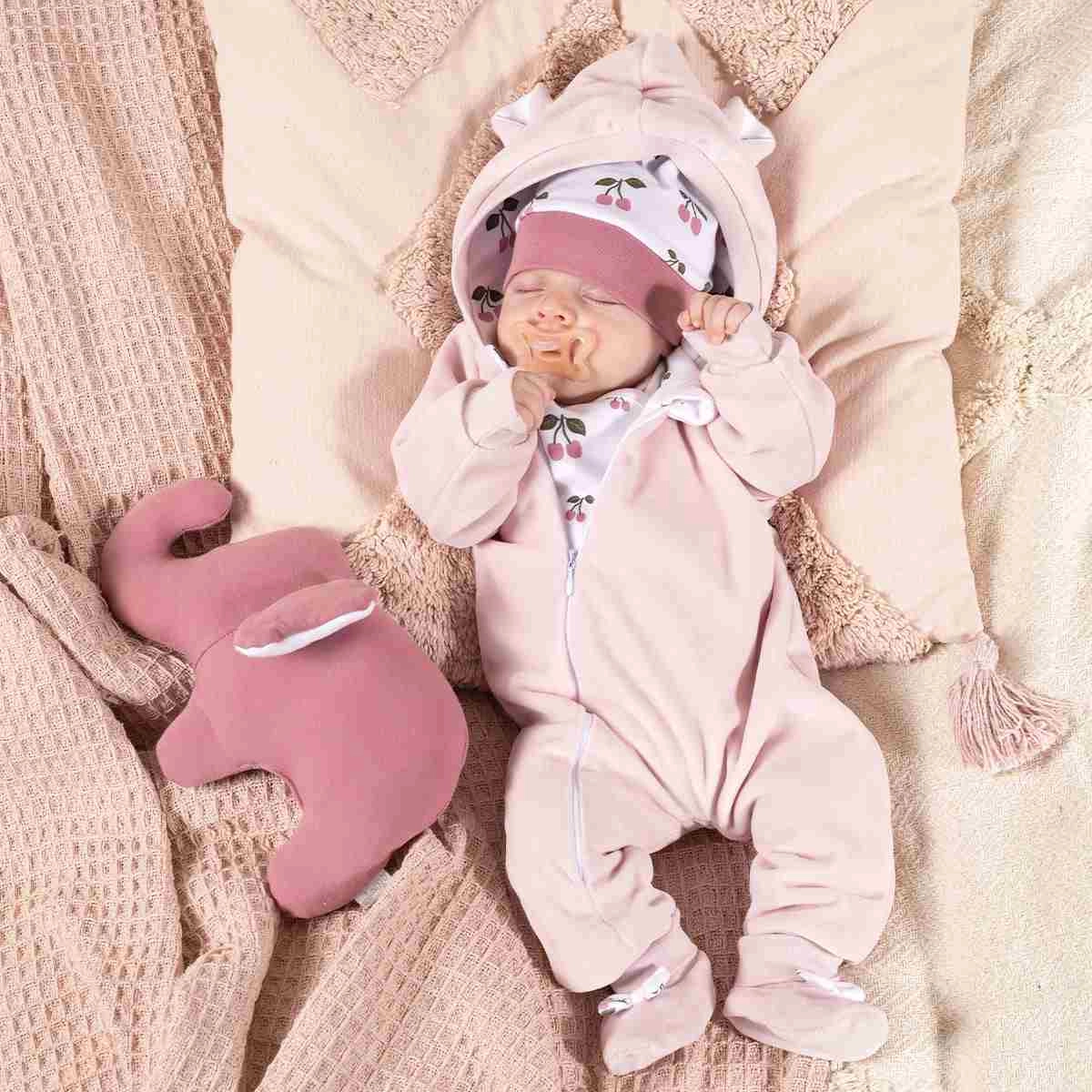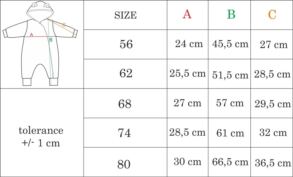 Praktiske detaljer som opslåelige ærmer og hætte med søde ører gør den til et ideelt valg til daglige gåture og kørsel i barnevogn. Materialet bevarer sin form og sit udseende over tid, så dragten ser flot ud selv efter gentagen vask.