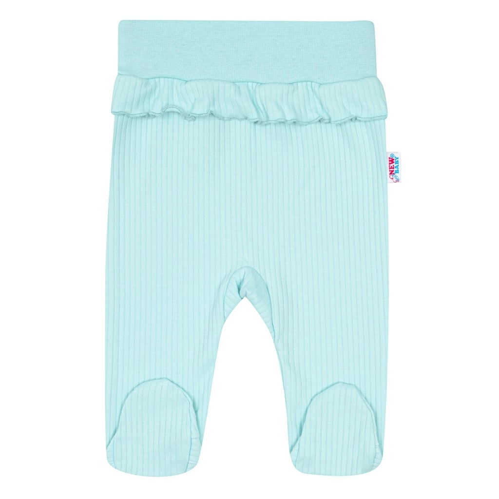 Bukserne har en bred elastisk kant i taljen, som ikke trykker på maven og samtidig sidder godt. Det bløde ribmateriale og de diskrete flæsedetaljer giver sættet et charmerende look, mens de integrerede fødder holder tæerne varme.