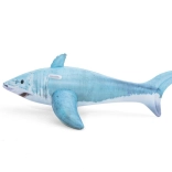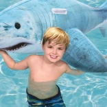 Hajen med detaljeret print, finner og hale skiller sig ud i enhver pool. Størrelsen 183 × 102 cm giver komfort og stabilitet under turen.