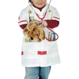 Stilfuld lægefrakke til børn fra mærket KLEIN til små læger i alderen 3–5 år. Let materiale af 100% polyester, korte ærmer, lukning med velcro og to praktiske lommer. Den hvide frakke er dekoreret med farverige tryk af lægeinstrumenter som stetoskop, termometer og sprøjte – ideel til rolleleg og udklædning.