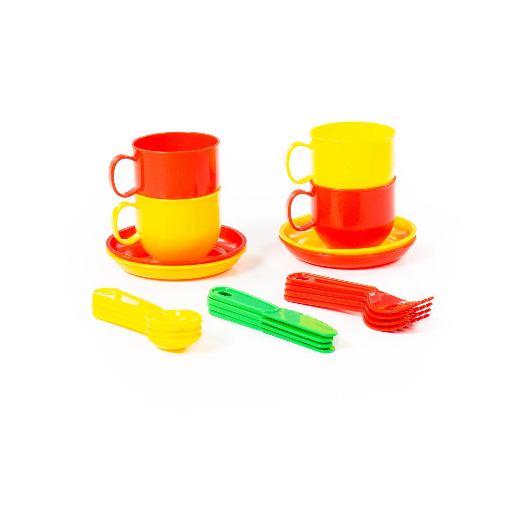 Dette farverige børnespisessæt til 4 personer er et glimrende valg til enhver legekøkken. Det indeholder alt, hvad børn behøver for at lege fest – fra bakke til tallerkener og kopper til bestik. Glatte kanter, let konstruktion og nem vedligeholdelse sikrer sikker og behagelig brug.