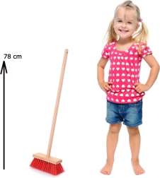 Denne kvalitetsudførte børnekost med naturtræshåndtag og tætte røde plastbørster er perfekt til rolleleg med huslige opgaver og let fejning både inde og ude. Det glat slebne træ sikrer et behageligt og sikkert greb, mens den afbalancerede udformning gør den let at håndtere selv for mindre børn.