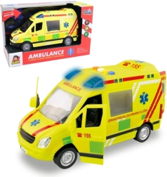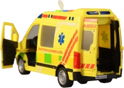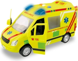 Denne detaljerede ambulance i ægte tjekkisk bemaling vil glæde alle små redningsfolk. Takket være friktionstrækket kører den let, lyser med blå advarselslys og afspiller autentiske tjekkiske stemmer fra både mandskab og dispatch, som gør legen endnu mere virkelighedstro.