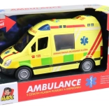 Realistisk legetøjsambulance i skala 1:16 giver børn en autentisk redningsoplevelse. Kører med friktionstræk, har fungerende blink med blå lys, tjekkiske stemmebeskeder fra mandskab og dispatch, åbne-døre-funktion og leveres inklusive batterier.