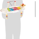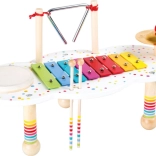XYlofon, tromme, triangel og bækken er overskueligt arrangeret på ét stabilt bord, så børn let kan afprøve forskellige lyde og rytmer.