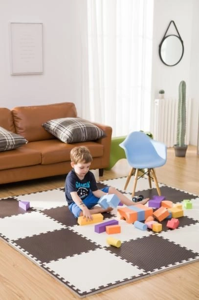 HUMBI-måtten af kvalitets EVA-skum skaber et sikkert og hygiejnisk område til leg, kravlen og de første skridt. Takket være en tykkelse på 1 cm absorberer den stød og beskytter mod kulde fra hårde overflader som fliser, parket eller laminat. Den neutrale brune tone forstyrrer ikke barnet og passer ind i enhver indretning.