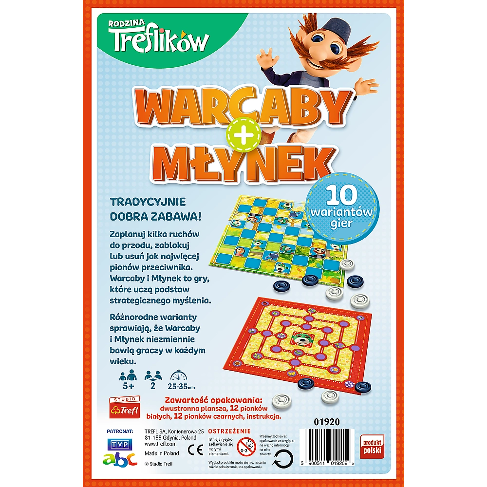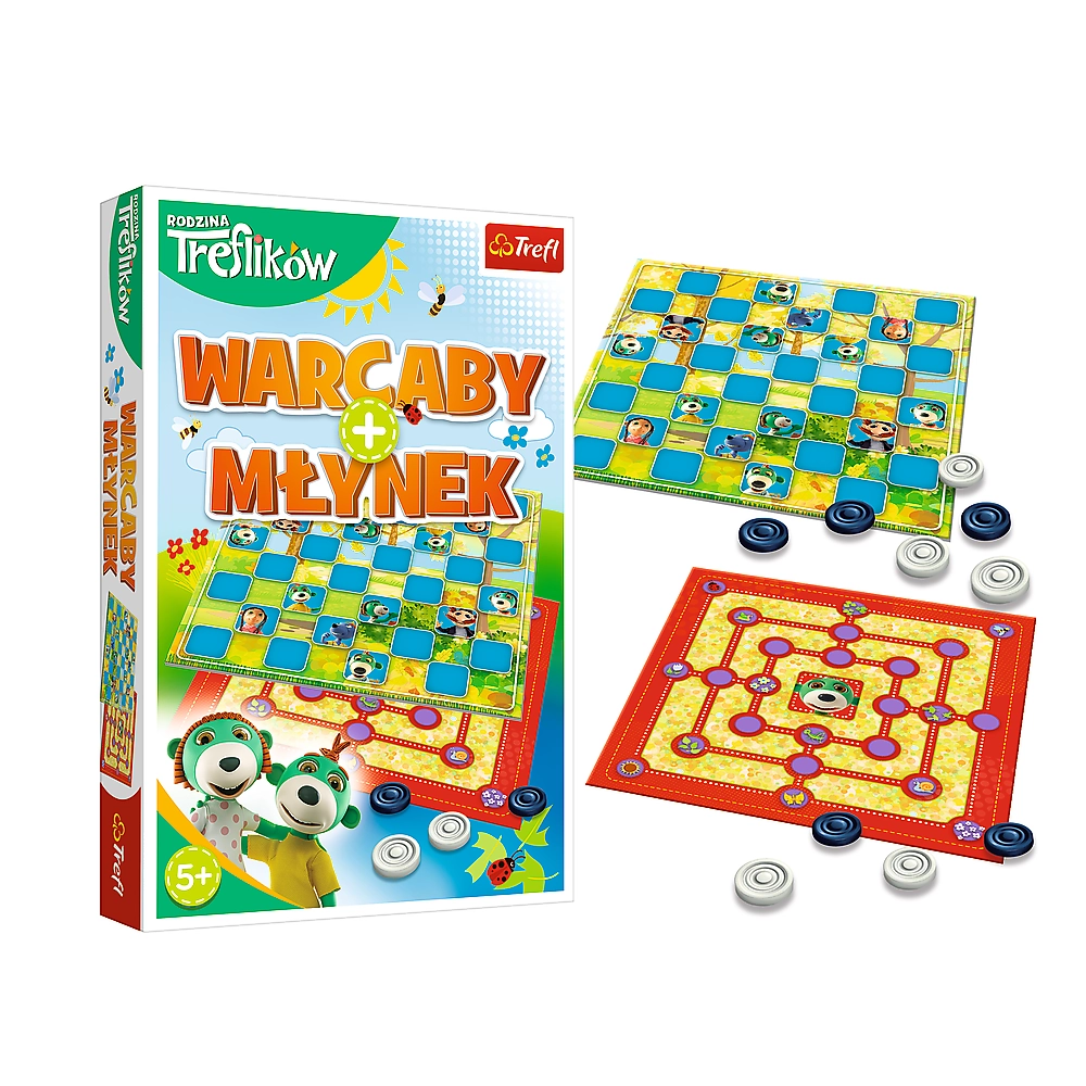 Opdag et sjovt sæt brætspil fra eventyruniverset Treflík-familien fra TREFL. Dobbelt portion klassisk underholdning – dam og mølle – på én dobbeltsidet spilleplade. Ideelt til 2 spillere, fantastisk til at udvikle logik og strategi, med hurtige spil på 5–20 minutter. Fremstillet i Polen og perfekt som gave til børn fra 5 år.