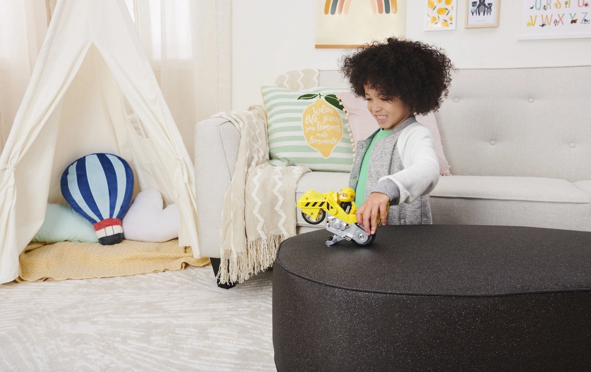 Takket være de ekstra støttehjul kan motorcyklen lave et imponerende wheelie – kørsel på baghjulet. Sæt Rubble-figuren i sædet og tag på eventyr, der styrker fantasien, finmotorikken og kærligheden til yndlingsheltene.