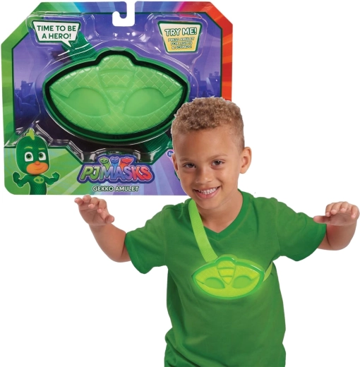 Bliv nattens helt som Gekko fra animationsserien PJ Masks. Den grønne amulet med rem fastgøres nemt på brystet, og med et enkelt tryk aktiverer du lyseffekter og lydmelodi. En perfekt accessory til kostumer og til rolleleg alene.