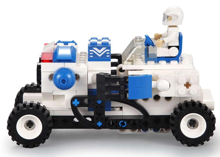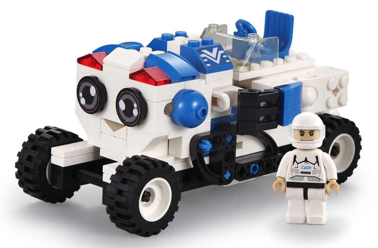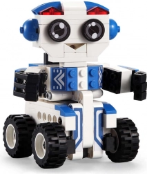 Af ét sæt kan du bygge enten en venlig robot med markante øjne eller en kompakt rover. Nem ombygning støtter kreativitet og længere leg.