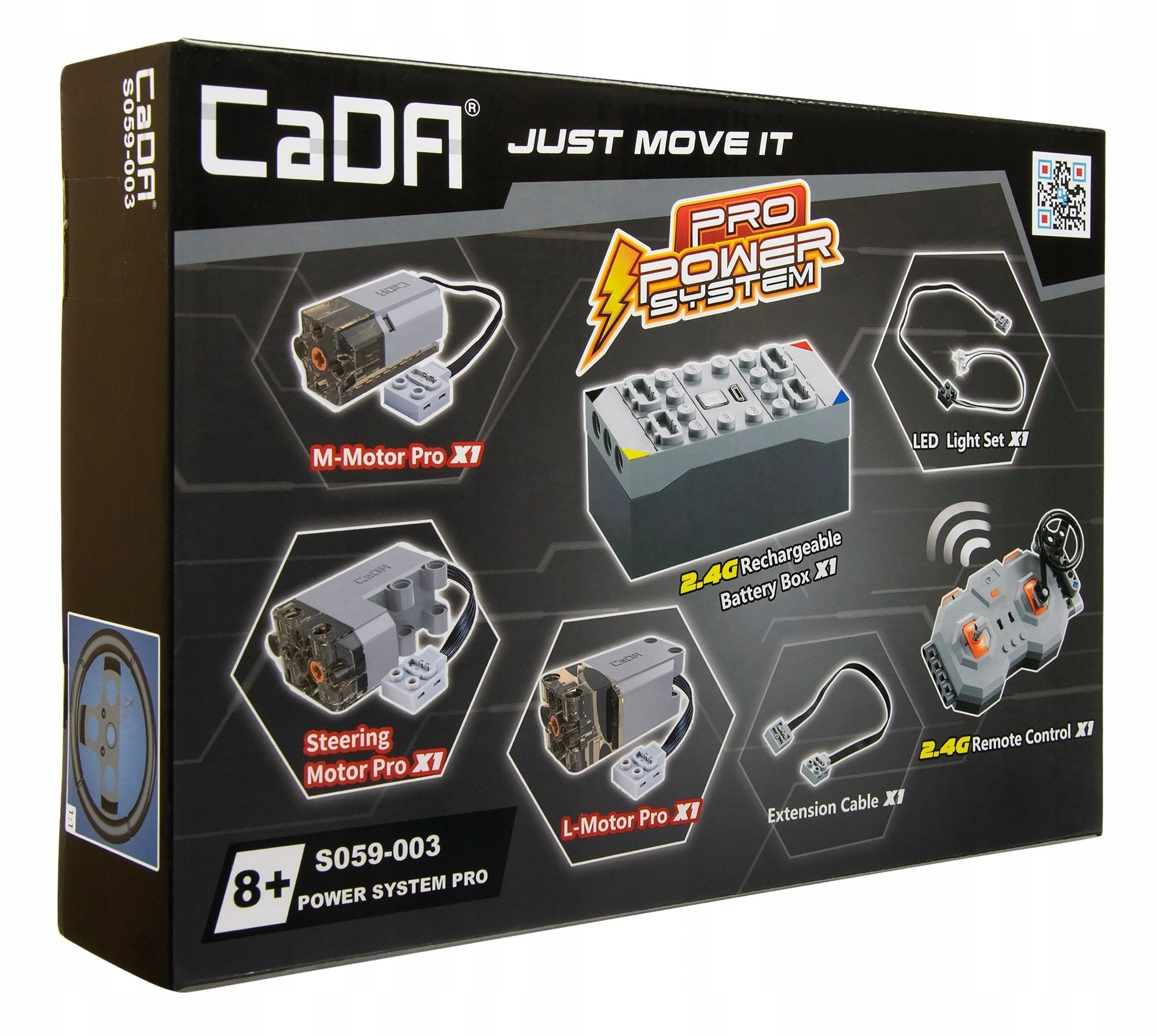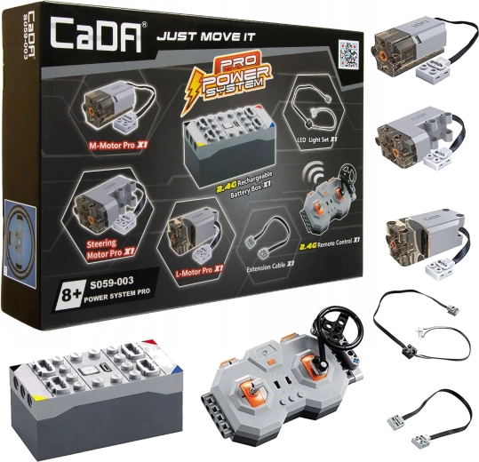 Pro Power System-sættet giver dine CaDA-byggesæt ægte fremdrift og manøvredygtighed. Med en kombination af motorer, servostyring, batteri og 2,4 GHz fjernbetjening kan du køre frem og tilbage, dreje, tænde/slukke LED-lys og på udvalgte modeller også åbne eller lukke døre. Ideelt til byggere, der vil forvandle statiske modeller til fuldt funktionelle RC-køretøjer.