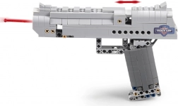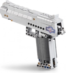 CADA Desert Eagle Falcon-byggesættet bringer en realistisk udført model af en sølvfarvet pistol med fokus på detaljer. Takket være technic-elementer har modellen en funktionel aftrækker og bevægelige dele, som forstærker oplevelsen ved både bygning og leg. I pakken medfølger 5 plastpatroner med sikker, afrundet afslutning.
