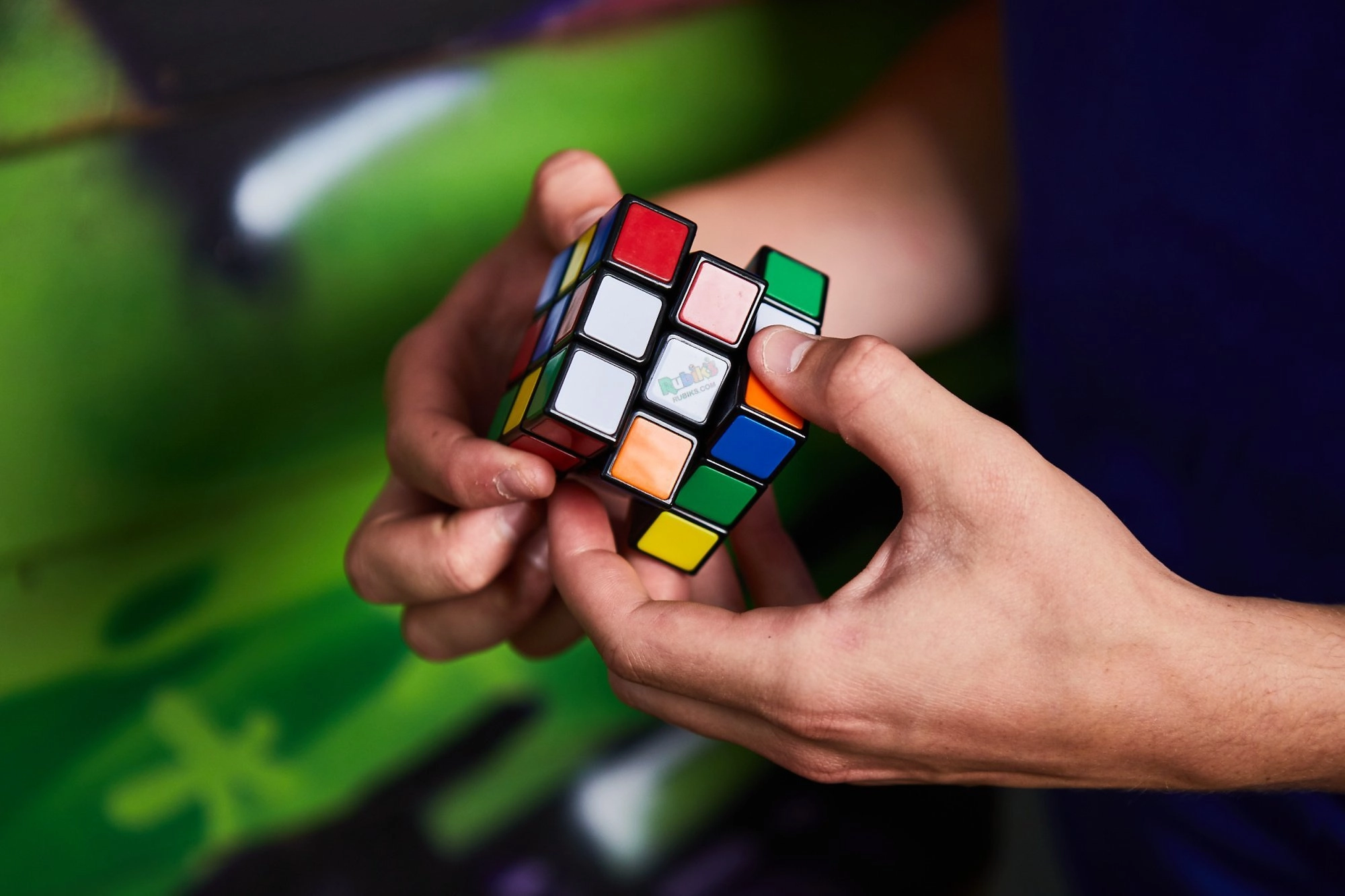 Pakken indeholder en standard 3×3 til træning og en mini 3×3-nøglering til leg når som helst og hvor som helst.