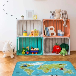 Dette kvalitets-børnetæppe fra ACHOKA kombinerer leg, læring og komfort. Den glade grafik med verdenskort og dyr stimulerer børns naturlige nysgerrighed, udvikler deres fantasi og viden og gør samtidig ethvert børneværelse ekstra hyggeligt. Den fløjlsbløde overflade er behagelig at røre ved og egner sig til daglig leg, afslapning og motoriktræning.