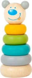 Denne kvalitets træ-stableleg i tårnform vil glæde enhver tumling. Børn trækker de farvede ringe ned over træpinden fra den største til den mindste og sætter til sidst det søde bjørnehoved på. Legen understøtter naturligt logisk tænkning, tålmodighed og skelnen mellem størrelser.