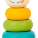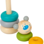 Børnene stabler ringene fra den største til den mindste og styrker samtidig deres viden om farver, former og rækkefølge.