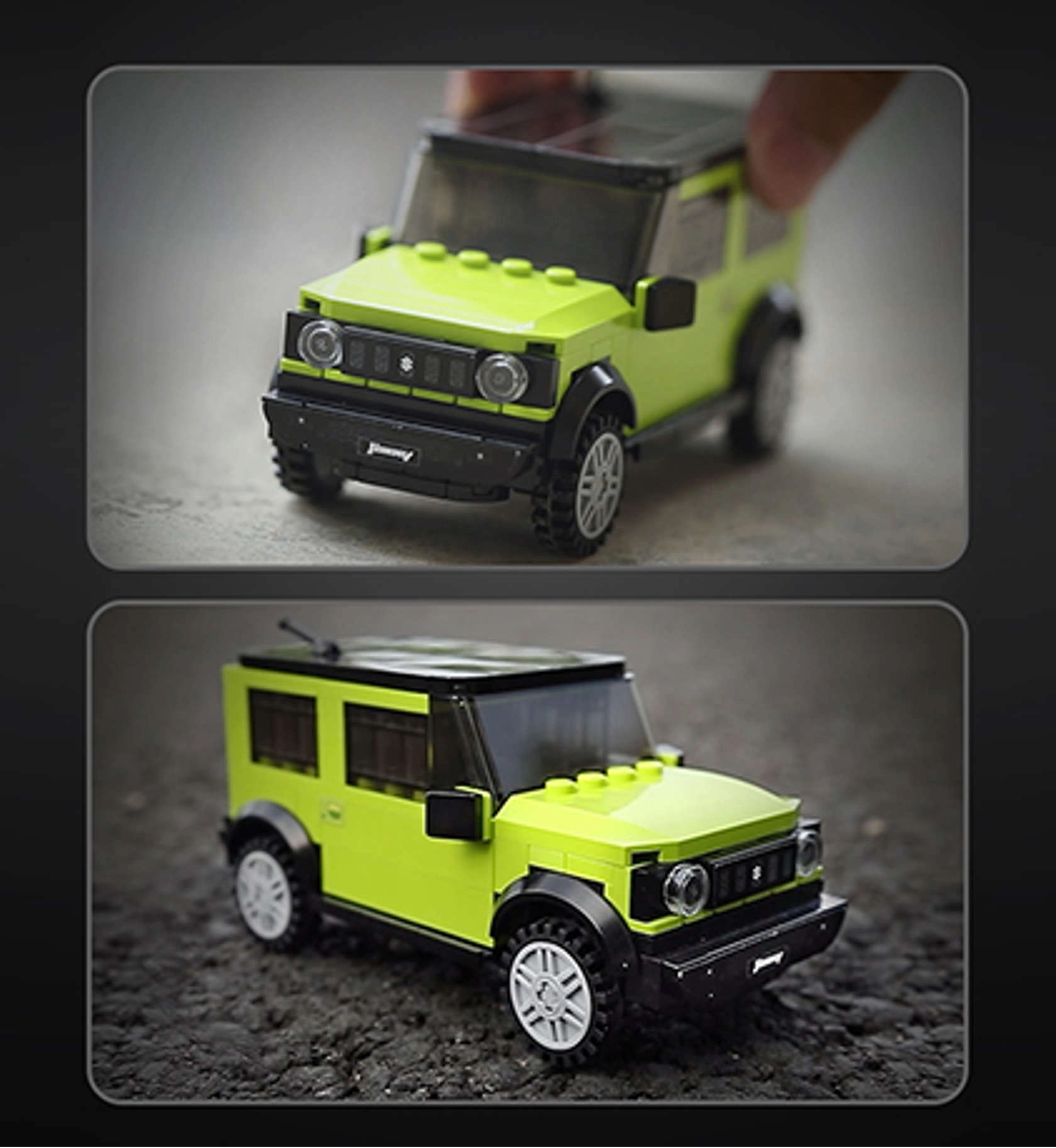Oplev den licenserede model af SUZUKI Jimny fra CaDA, som imponerer med realistiske detaljer og et robust udtryk. Det grønne karrosseri med sorte accenter, den troværdigt udformede front og de store terrænhjul giver byggesættet en autentisk offroad-karakter. Den færdige model ruller frit på hjulene og ser fantastisk ud på hylden.