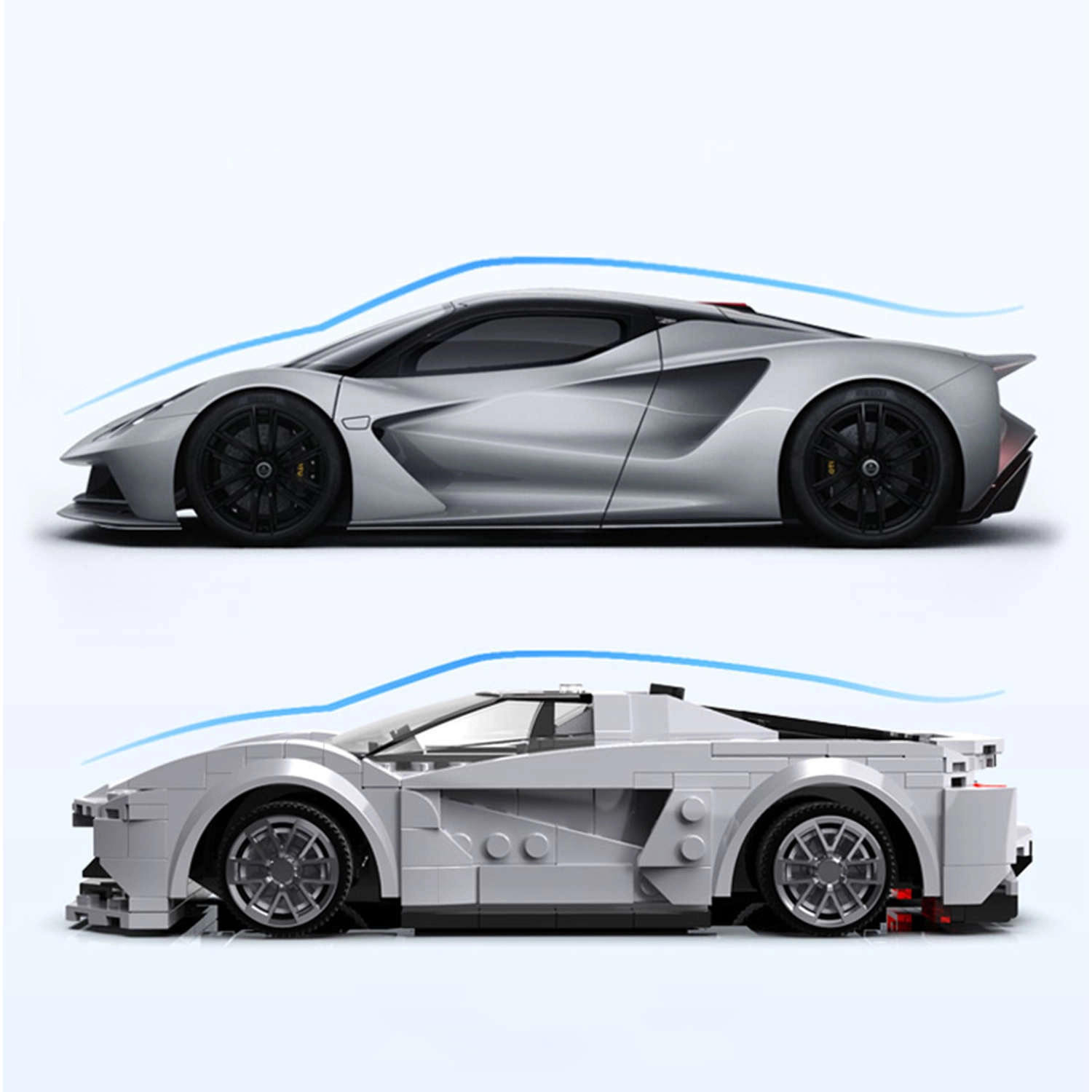 CaDA-byggesættet fra serien “Make Your Bricks Move” vil glæde enhver teknik- og fartentusiast. Af 308 dele samler du en grå model af LOTUS Evija med sorte elementer og realistiske detaljer. Bilen har funktionel styring, gummihjul for jævn kørsel på forskellige underlag og kan styres på to måder – med RC-controller 2,4 GHz eller mobilapp via Bluetooth.