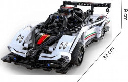 Aerodynamisk hvid karrosseri med detaljeret udførelse, stor bagvinge og funktionsdygtige LED-lygter giver modellen et autentisk superbil-look.