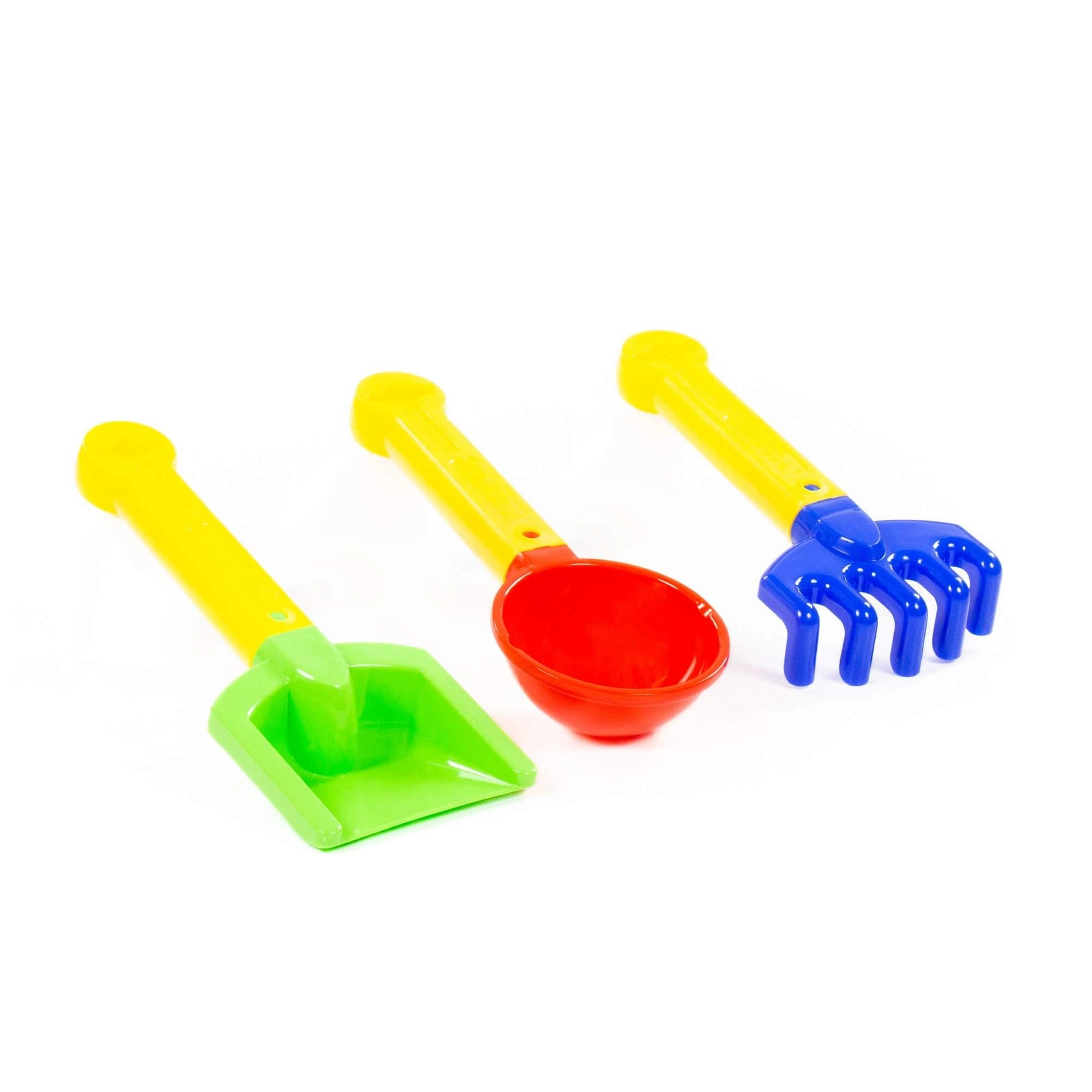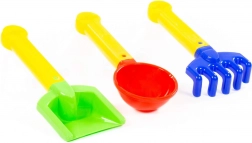 Praktisk sandsæt til de mindste indeholder 2 skovle og en rive med en længde på 24 cm. Ideelt til sandkasse og strand, let, holdbart og egnet fra 1 år.