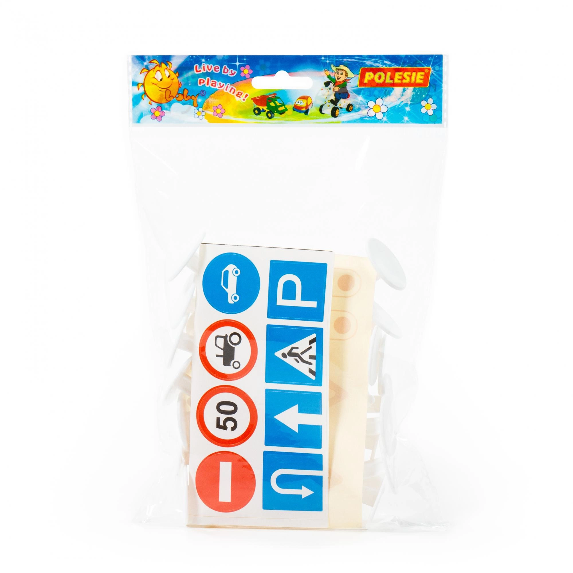 Pakken indeholder et ark klistermærker, så du nemt kan skabe realistisk trafikal skiltning efter behov.