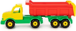 Farverig plastlastbil med anhænger på 58 cm giver timevis af sjov derhjemme og i sandkassen. Den har en robust konstruktion, tipbar ladkasse bagud og bevægelig bagklap for nem lastning og losning. Fremstillet i kvaliteten Wader quality toys for sikker og langvarig leg.