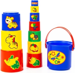 Denne store stablepyramide med dyr er det ideelle legetøj til børn, der elsker at bygge og udforske. De enkelte kopper med dyrebilleder passer nemt ind i hinanden og gør det muligt at bygge et tårn op til 73 cm højt. Under legen træner børn koordinationsevner, finmotorik og logisk tænkning.