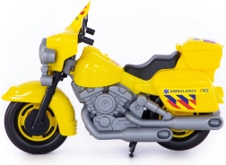 Den iøjnefaldende gule farve, nødmarkeringer og alarmnummer giver motorcyklen et autentisk udseende af ægte indsatsudstyr.