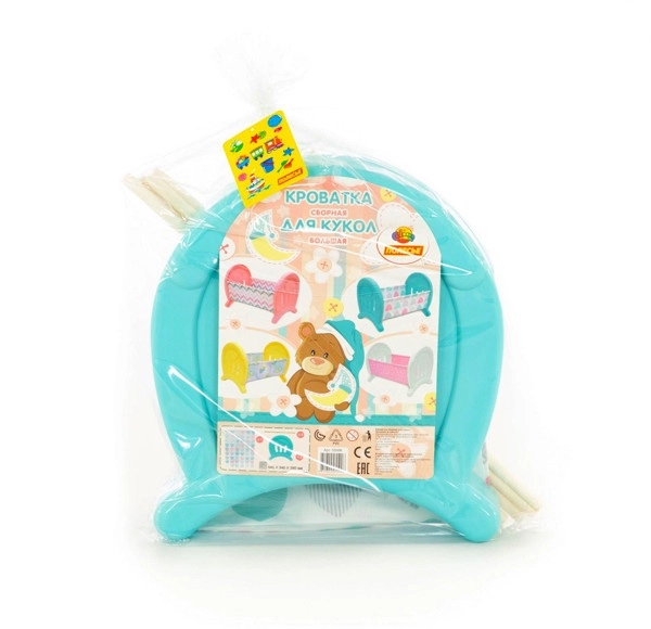Den sammenklappelige dukkeseng kombinerer solide plastikgavle og en blød tekstilseng, så den er let, men samtidig stabil. Børn kan lægge dukken behageligt til rette og vugge den blidt i søvn, hvilket udvikler fantasi og omsorgsevner.
