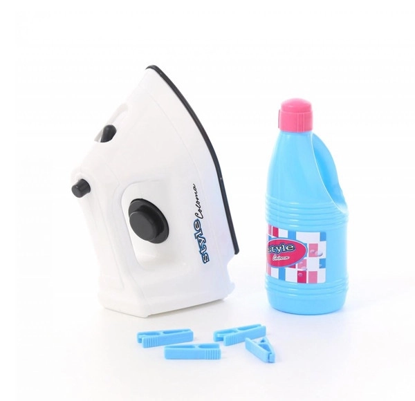 - Komplet tilbehør til realistisk leg med vask og strygning.
