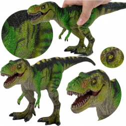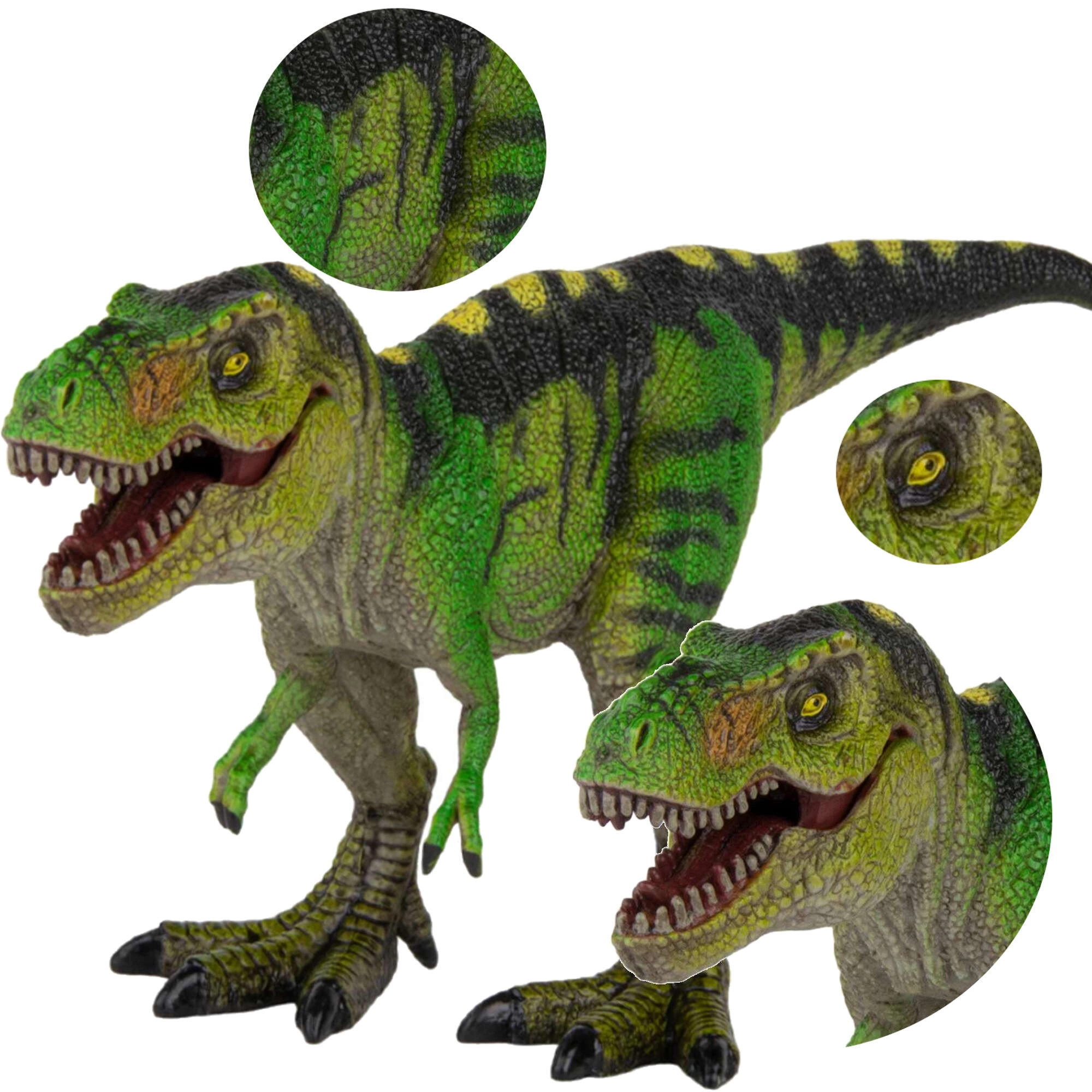 Denne rovdyrs‑T‑Rex i grøn‑sort design imponerer med detaljeret hudtekstur, skarpe tænder og omhyggelig bemaling. Den bevægelige kæbe giver legen autenticitet og understøtter fantasi og historiefortælling.