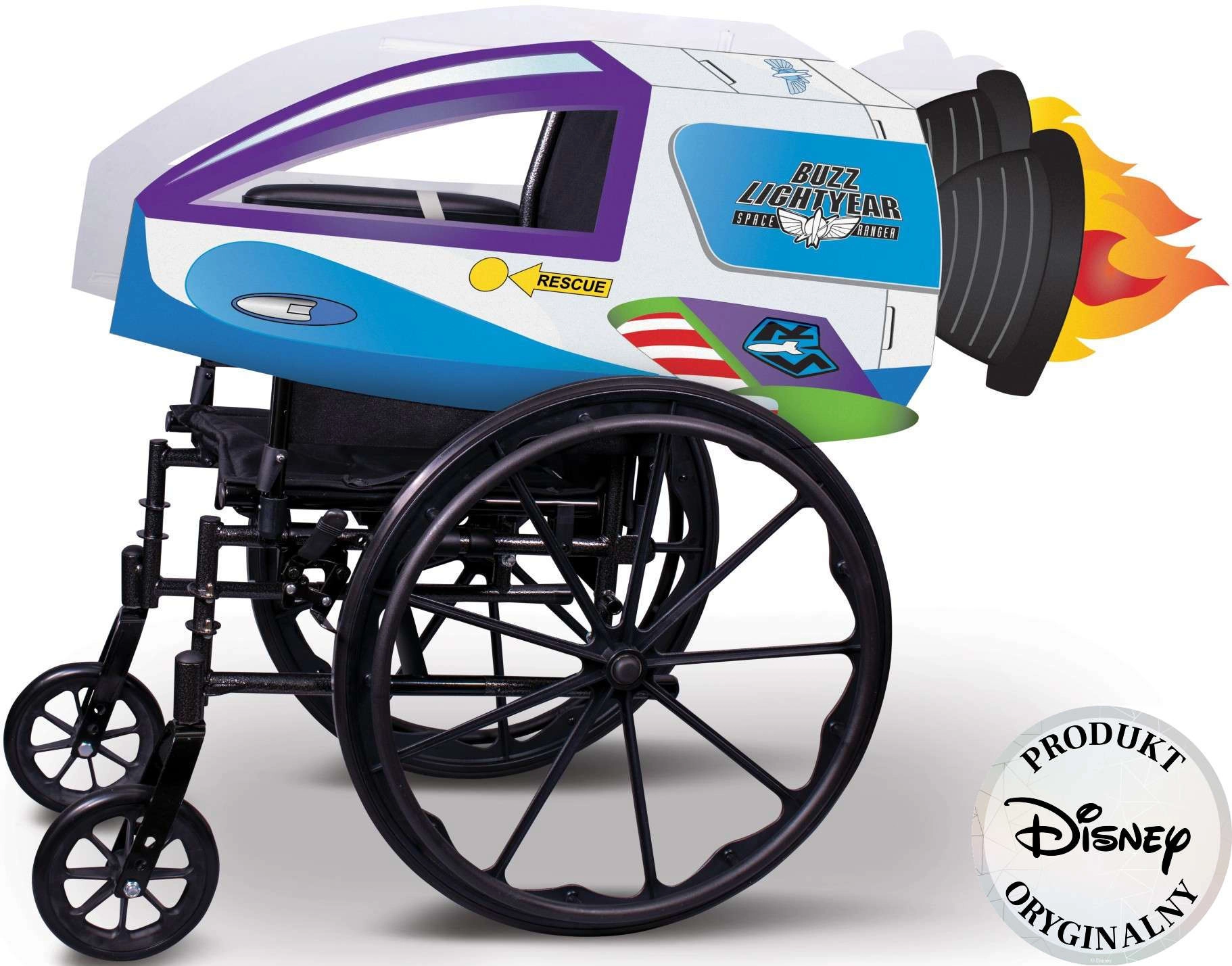 Tag på en uendelig rejse ud i rummet med Buzz Lightyears raket! Denne stilfulde påbygning til en børnekørestol forvandler hver tur til et eventyr. Kostumet er lavet af slidstærk filt, er let, komfortabelt og designet til ikke-elektriske kørestole med hjul på 24" (61 cm). Officiel DISNEY-licens sikrer autentiske detaljer og høj kvalitet.