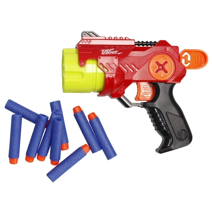 Pakken indeholder pistolen og 9 skumpile, hvilket er et perfekt startsæt til konkurrencer i præcision og hastighed. Vælg mellem to attraktive farver – rød og blå. Legetøjet er beregnet til børn fra 8 år og leveres i en æske med vindue, hvilket gør den oplagt som gave.