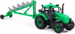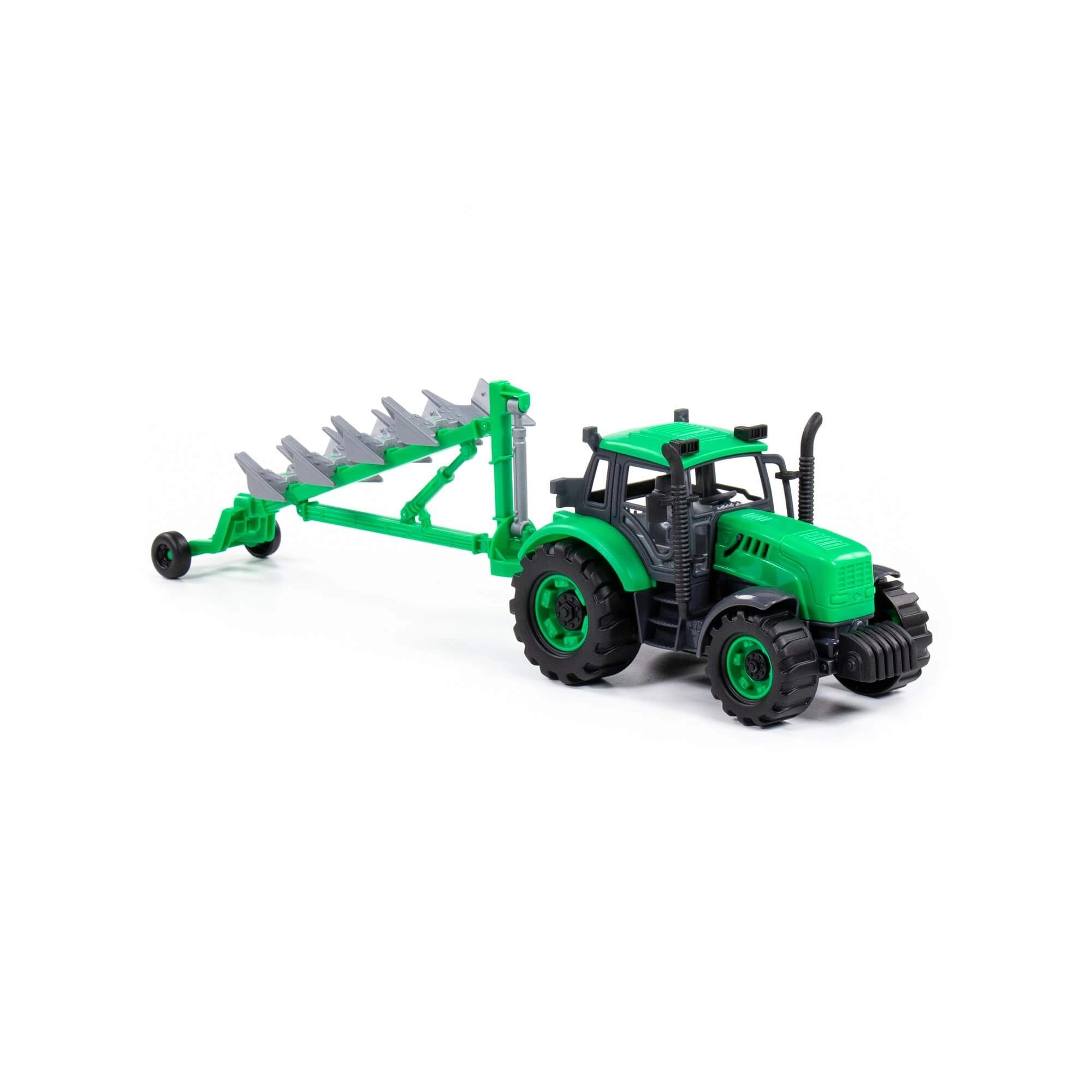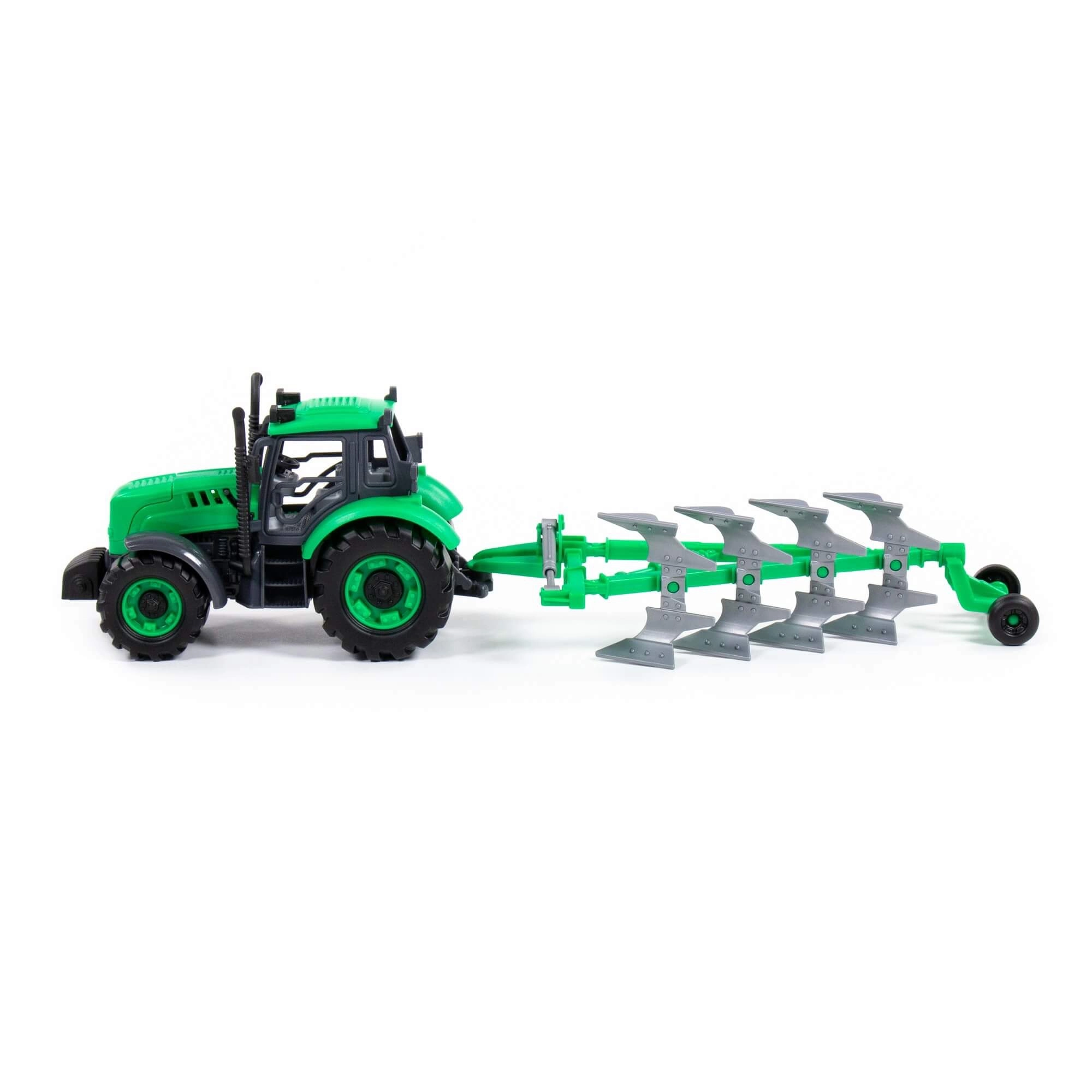 Denne realistiske traktor med trailer og plove giver børn masser af lege-scenarier – fra markarbejde til service i værkstedet. Den inertielle (friløbs) drift forbedrer fremkommeligheden på forskellige underlag og giver længere kørsel med ét skub. Takket være den åbningsbare motorhjelm med lås kan børn efterligne vedligeholdelse af maskinen og udvikle deres fantasi.