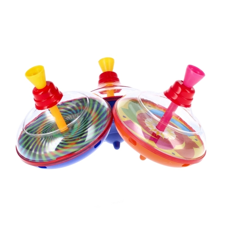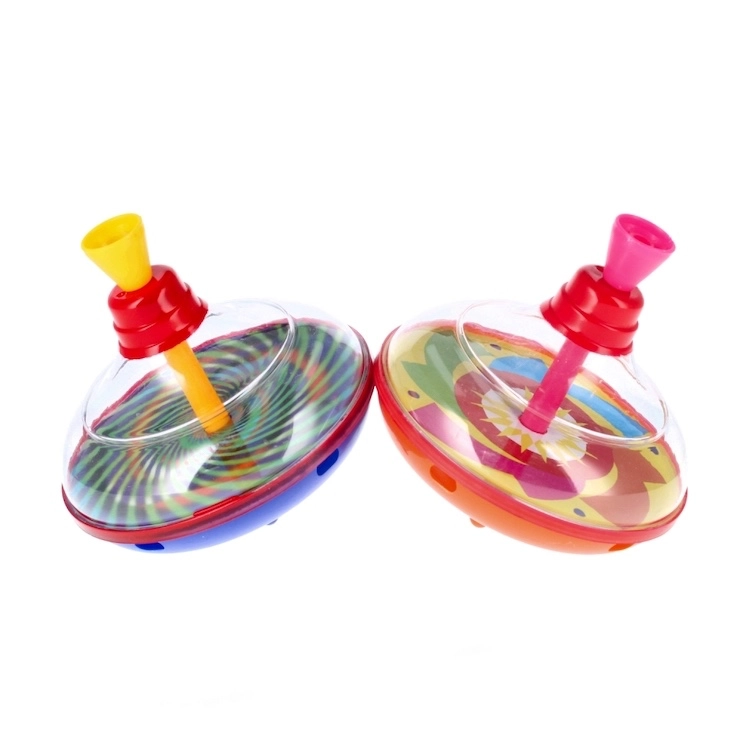 Denne klassiske snurretop er et tidløst stykke legetøj, der aldrig bliver kedeligt. Med et enkelt tryk på stemplet sættes toppen i gang og skaber en fascinerende visuel effekt. Et godt valg til førskolebørn, der udvikler fingerfærdighed og koncentration.