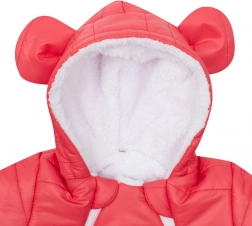 Hætten med søde ører og opslagsærmer med blød kant beskytter mod kulde, og lukkede fødder holder små tæer varme. Det antiallergiske polyesterfyld øger varmen uden unødig belastning. Ideel til daglig brug i barnevogn og til vinterture.