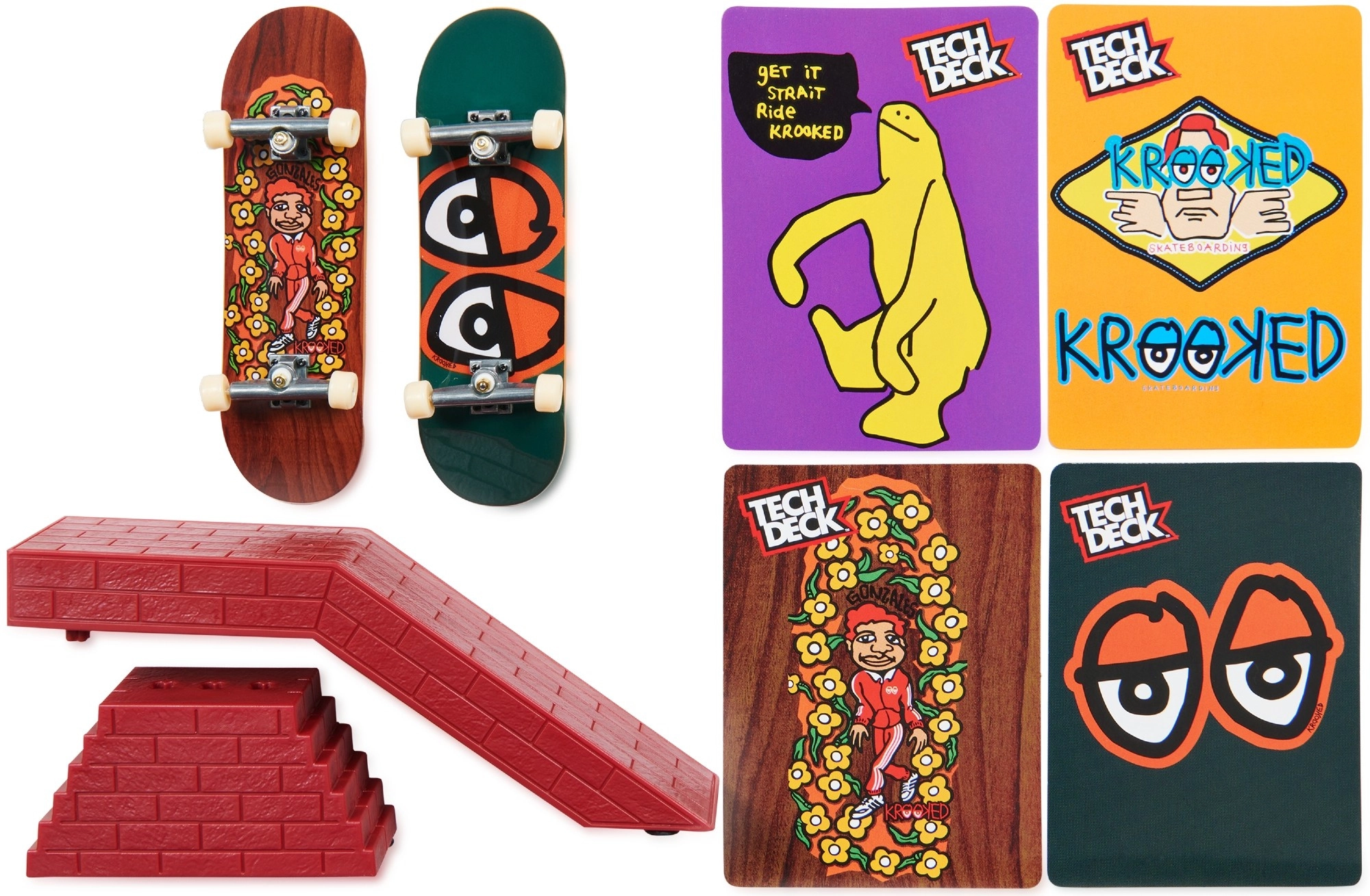 TECH DECK VS Series Krooked-sættet giver en realistisk fingerboarding-oplevelse for både begyndere og øvede. To præcist udførte mini-skateboards med metaltrucks og funktionelle hjul suppleres af en murstensrampe med forhindring, hvor du nemt kan træne grinds, ollies og andre favorittricks.