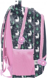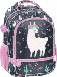 Stilfuld skolerygsæk fra Paso i grå‑rosa farvekombination med en sød lama og en blød “pelsagtig” detalje. Den er let, har ergonomiske, justerbare stropper, ét stort rum, et mindre rum, en frontlomme og sidelommer i net. Modstandsdygtig mod gennemblødning, med reflekterende elementer og forstærket bund for behagelig daglig brug.
