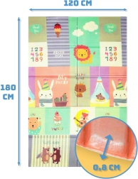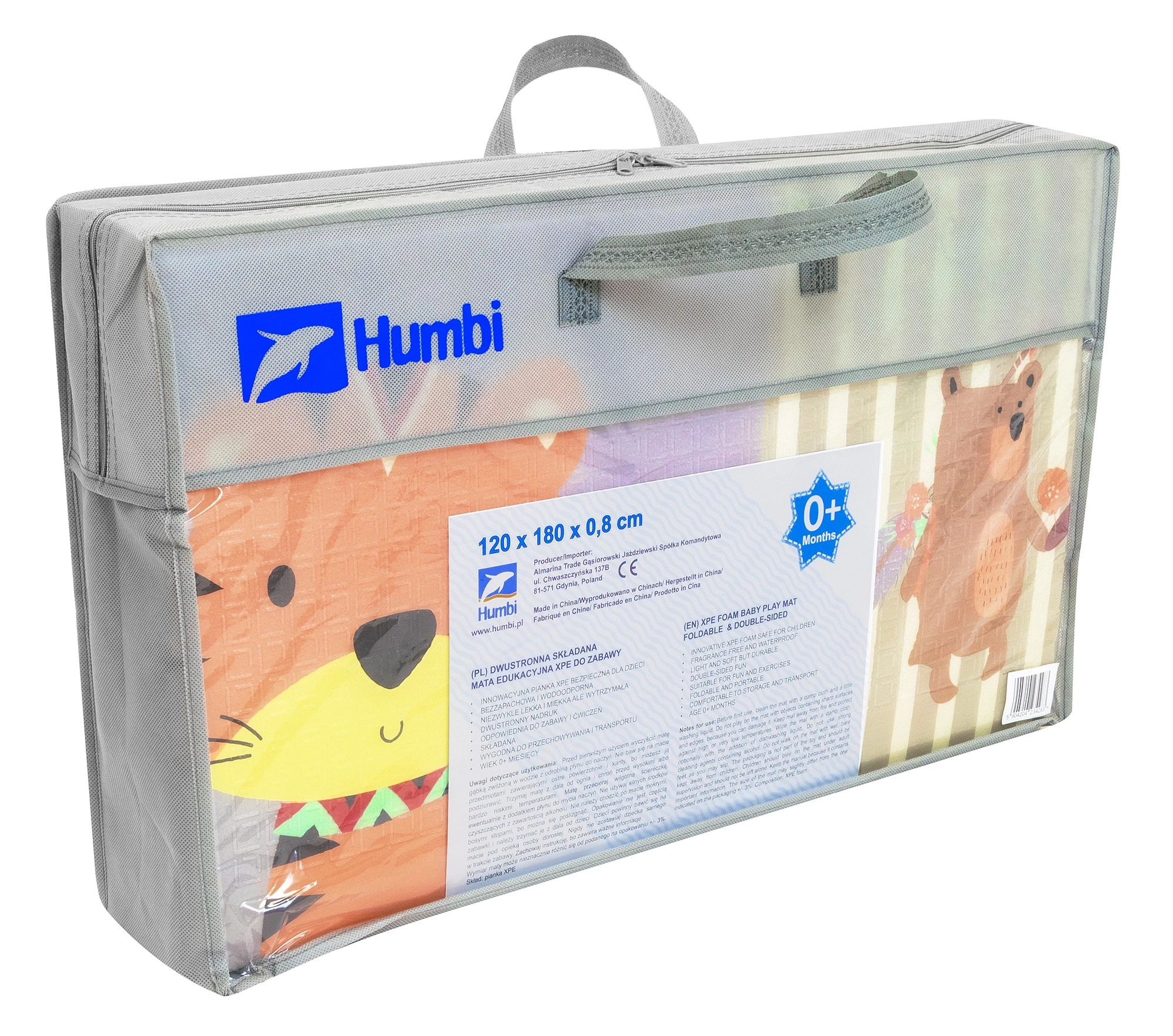 Måtten er let, hurtig at folde sammen, og takket være den medfølgende taske med lynlås kan du nemt tage den med på tur, picnic eller altan. XPE-materialet er lugtfrit, ikke‑giftigt, vandafvisende og nemt at vedligeholde – det er nok at tørre af med en fugtig klud. Den skridsikre struktur med fin relief understøtter sikker kravlen og gang og stimulerer sensorisk udvikling.