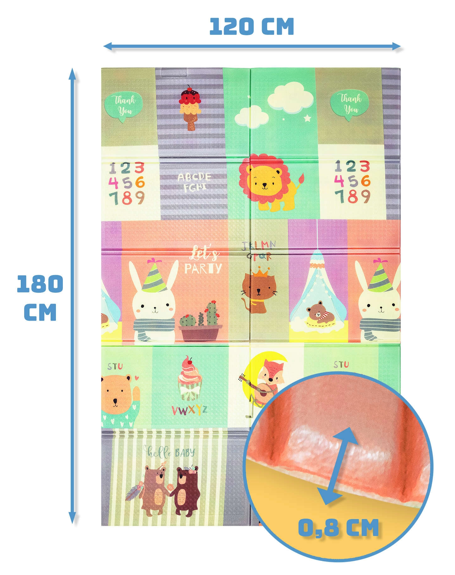 HUMBI legemåtten af kvalitets XPE-skum er ideel til børneværelset, stuen og haven. Takket være 0,8 cm tykkelse isolerer den effektivt mod kulde fra gulvet og dæmper stød ved fald. Det vendbare design byder på søde dyr i pastelfarver på den ene side og farverige gader på den anden – perfekt til både leg og sanseudvikling.