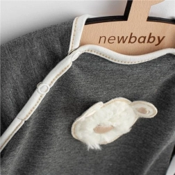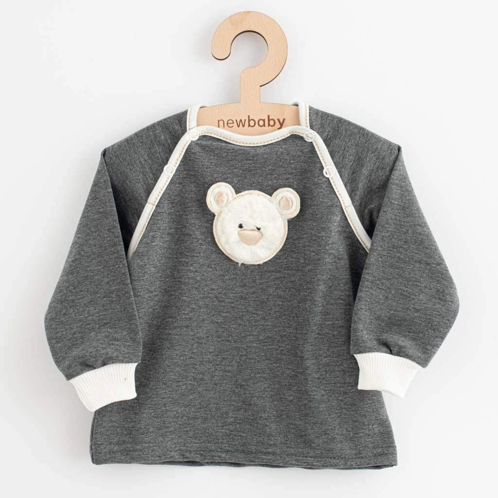 Opdag det praktiske og behagelige drengesæt New Baby Sebastian i neutral grå. Sweatshirten med et sødt bjørnemotiv har nem lukning med trykknapper ved skulderen, så påklædning går hurtigt og er skånsom mod babys sarte hud. Bukserne har bredere ribkanter i taljen og ved benene for behagelig pasform uden at stramme.
