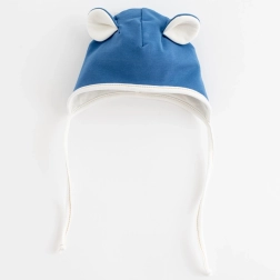 Praktisk 2-delt sæt til babyer New Baby Sebastian inkluderer en hue og en halsklud i en behagelig blå farve. Huen er formet ved ørerne, har for og bindebånd, så den sidder godt på hovedet. Halskluden kan lukkes i to størrelser. Ideel til overgangsperioden – forår og efterår. Behageligt bomuldsmateriale med elastan sikrer blødhed, elasticitet og komfort til hverdagsbrug.